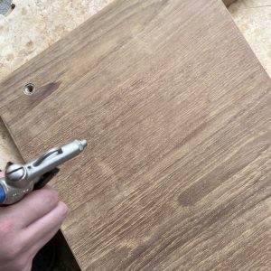 サンディング後、エアコンプレッサーっで木屑を飛ばします