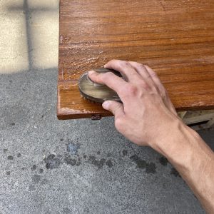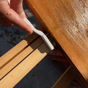 テーブルの天板はとても汚れやすいため、丁寧にブラシをいれ汚れを取り除きます