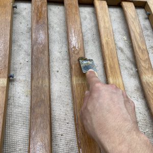 剥離剤を塗り、スクレーパーで古い塗膜を剥がします