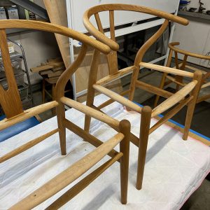 サンディング後、木屑をしっかり取り除きオイルを塗布します