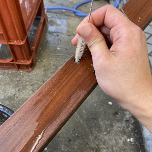 分解後、剥離剤を塗りブラシで洗い流します
