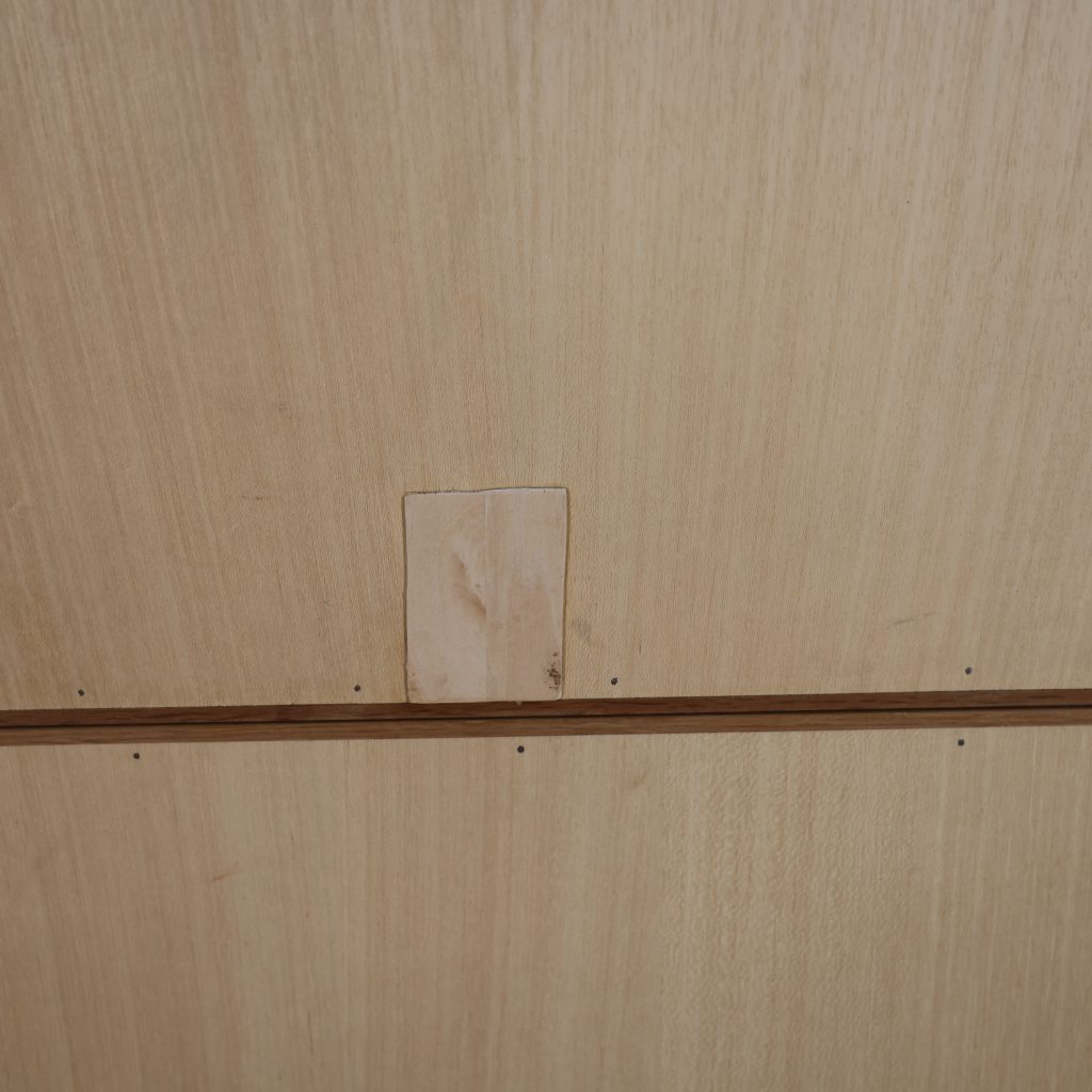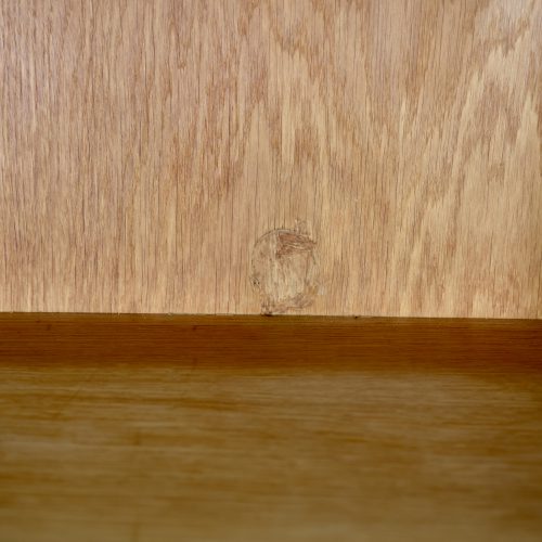 オークの明るい木目と、真っ直ぐとスッキリした取っ手。