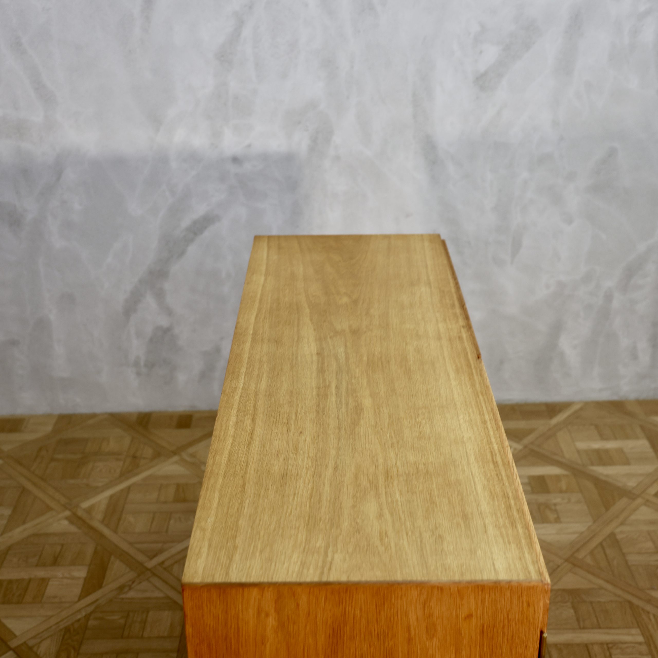 真鍮製の取手が印象的なキャビネット。