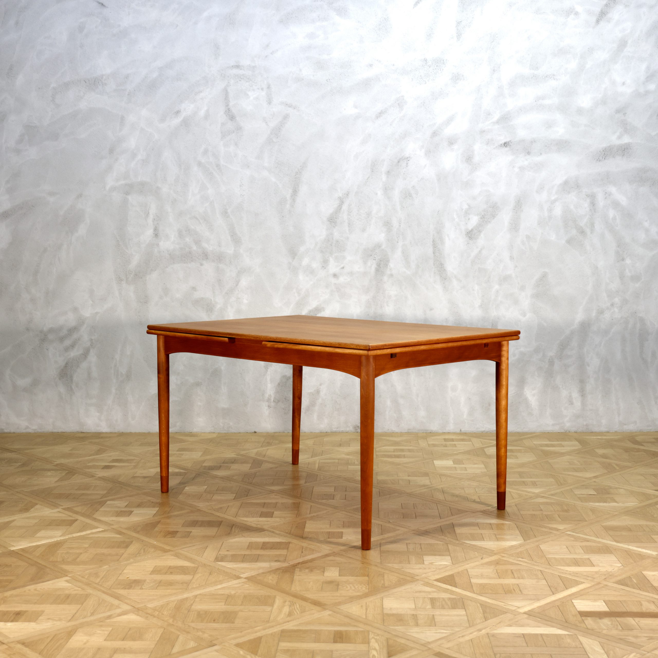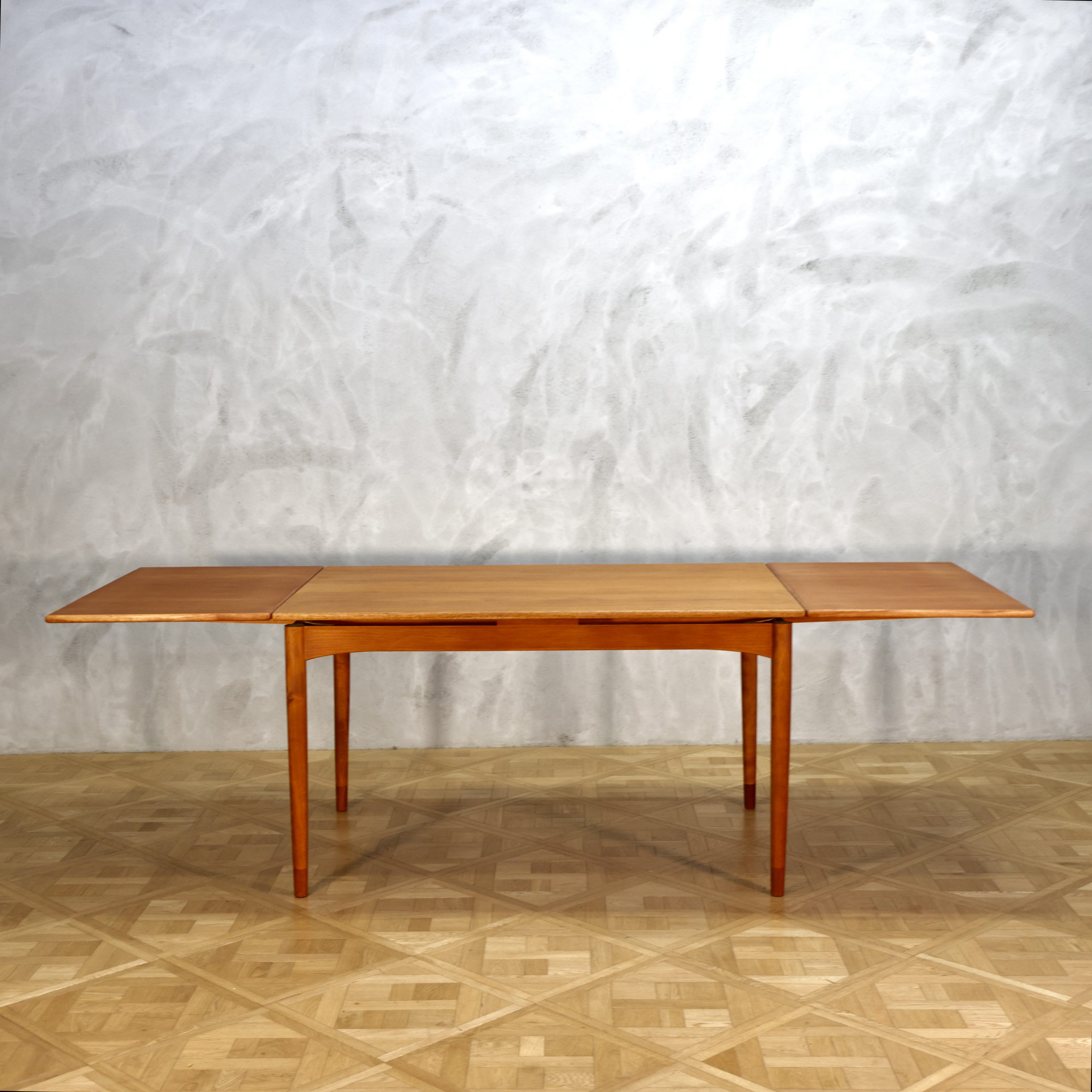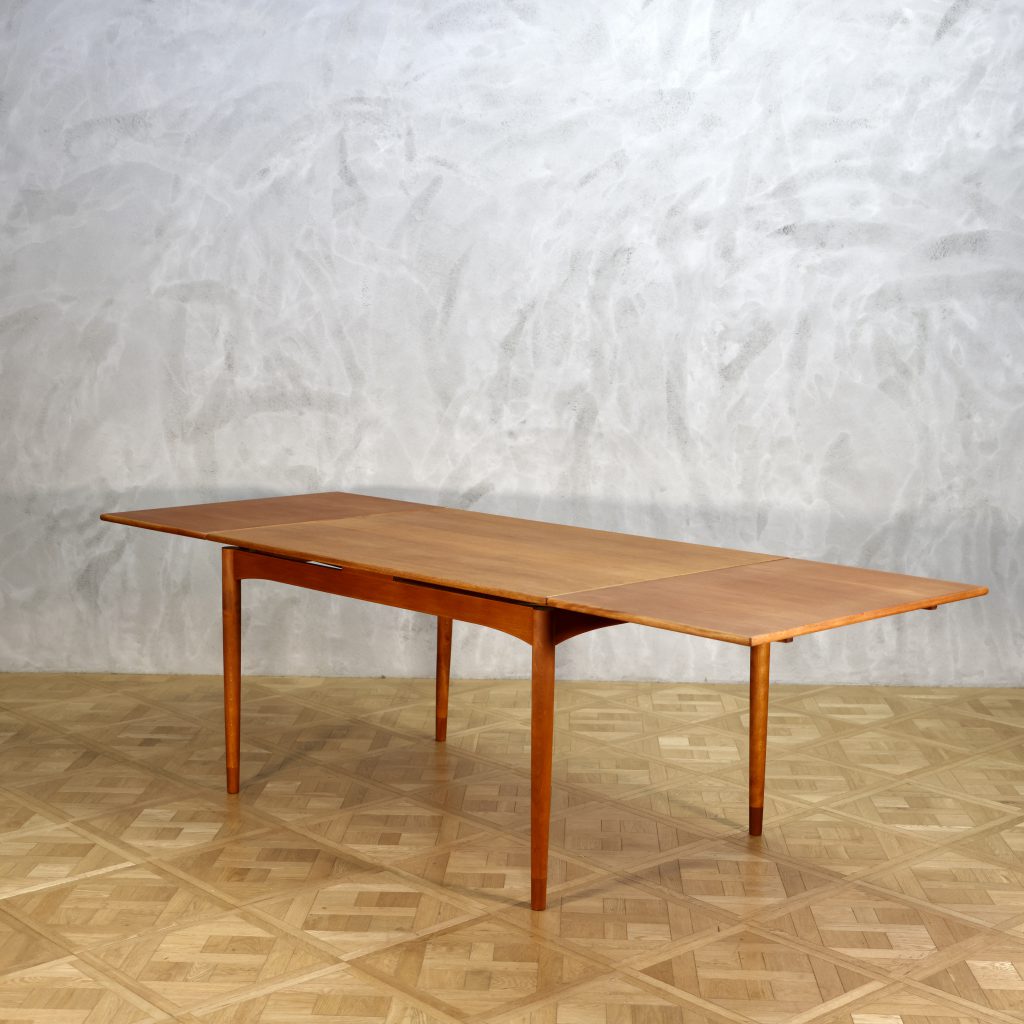 ボーエ・モーエンセンデザイン。 こちらは天板がチェリー材、脚部がビーチ材のシンプルなエクステンションテーブル。