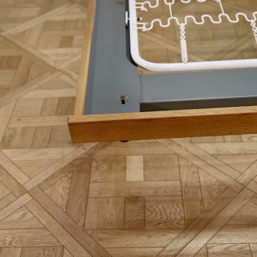 脚元の枠に関しましてはオリジナルを元にオーク材にて新規作製した物になります。