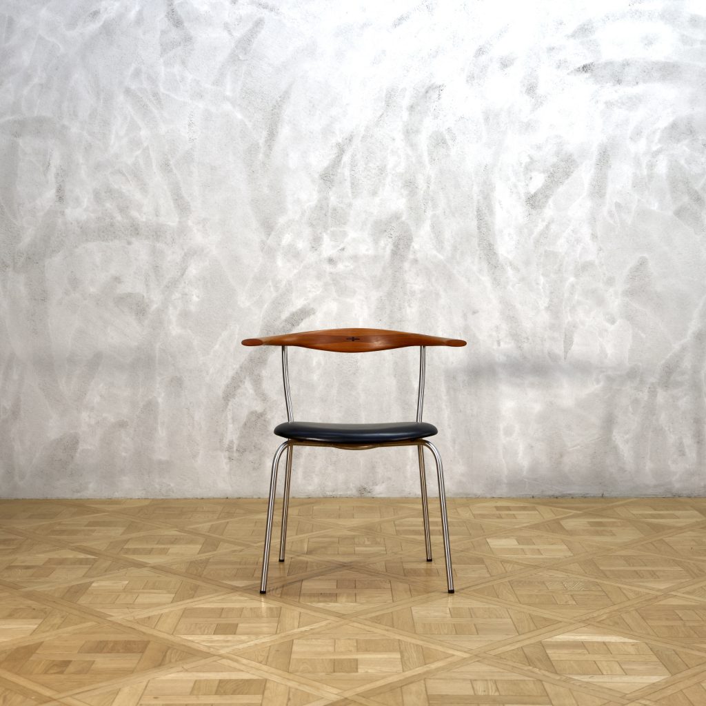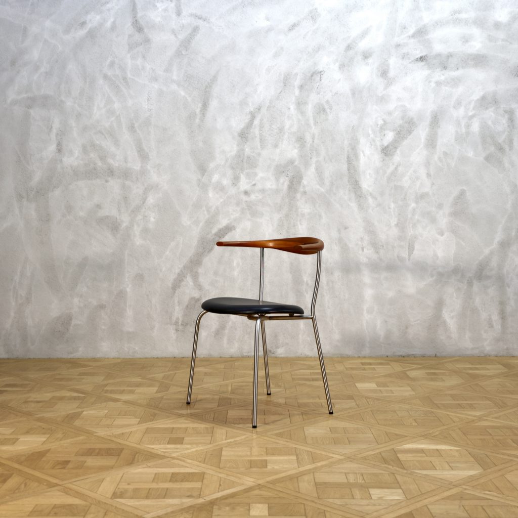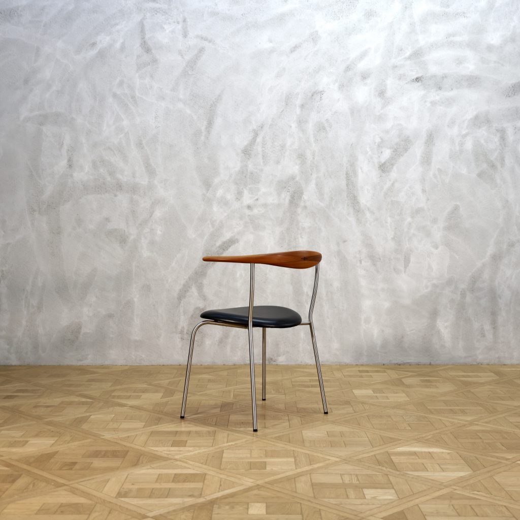 スチールフレームに座と笠木だけの構造を持つ美しい椅子です。現在はPP Moblerにて復刻販売されてますが、