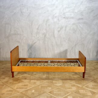 希少な当時のチーク材と籐の組み合わせが美しいベッドフレームとナイトテーブルのセットになります。