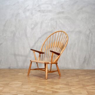 Hans J. Wegnerがデザインし、孔雀が羽を広げたフォルムのピーコックチェア。