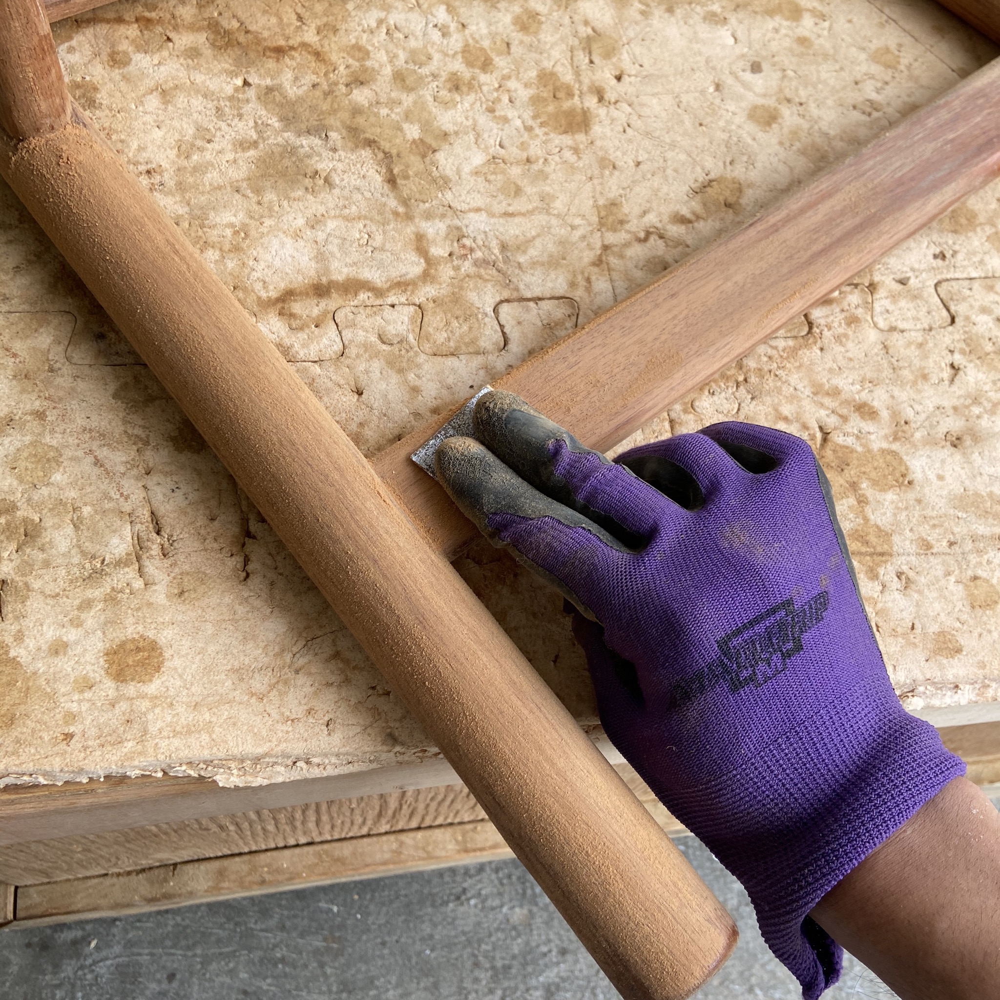 剥離後にしっかり自然乾燥させ、サンドペーパーで磨いていきます
