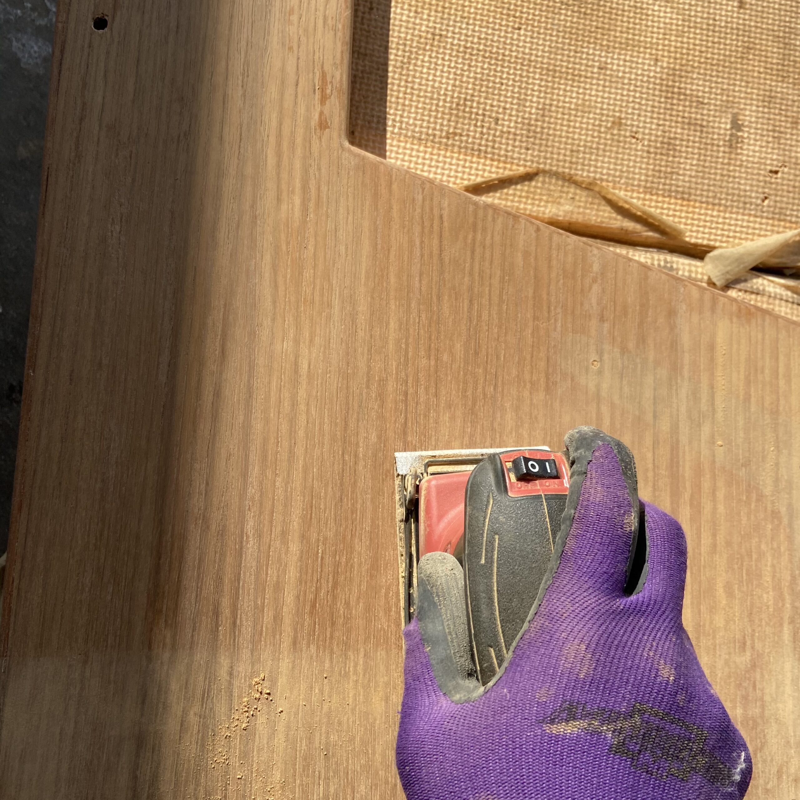 木部の形状に合わせて、サンダーと手作業を使い分けて磨いていきます