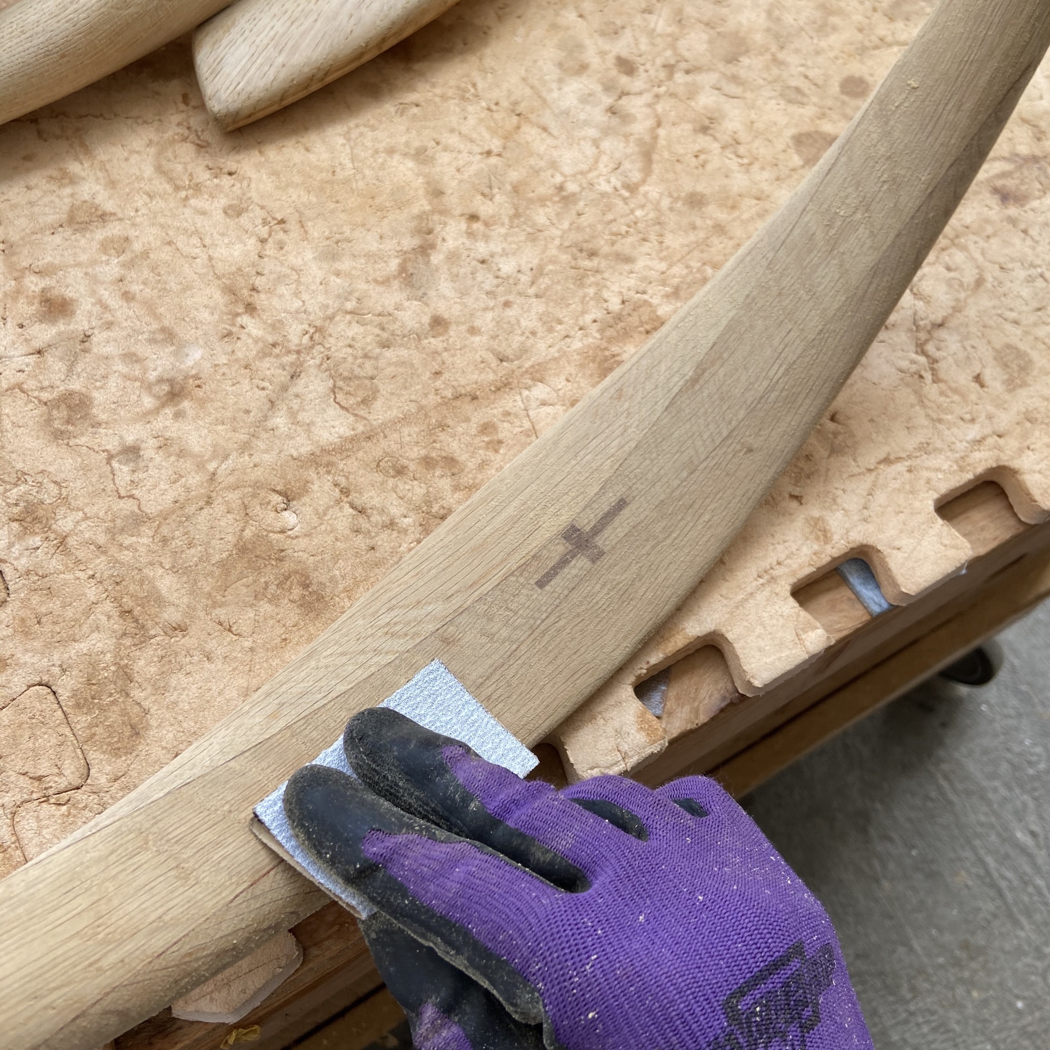 形状に合わせサンドペーパーを当て、磨いていきます