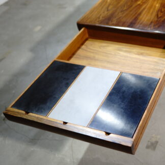本来GETAMA製ベットフレームの横に付けるナイトテーブルですが、自立して使用出来る様にチーク材脚部を作製致しました。