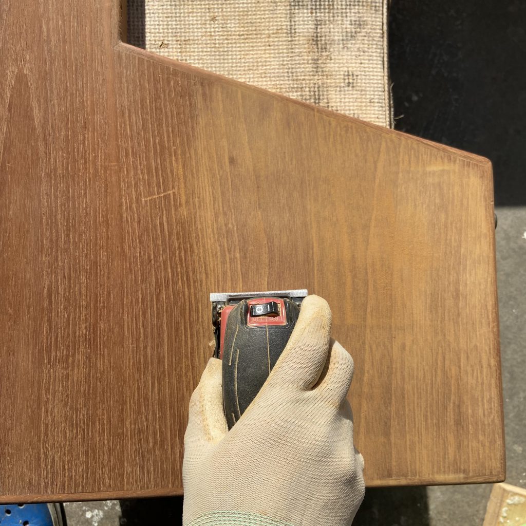 サンドペーパーを使い、全体の毛羽立ちと残ってる塗膜を取り除い…