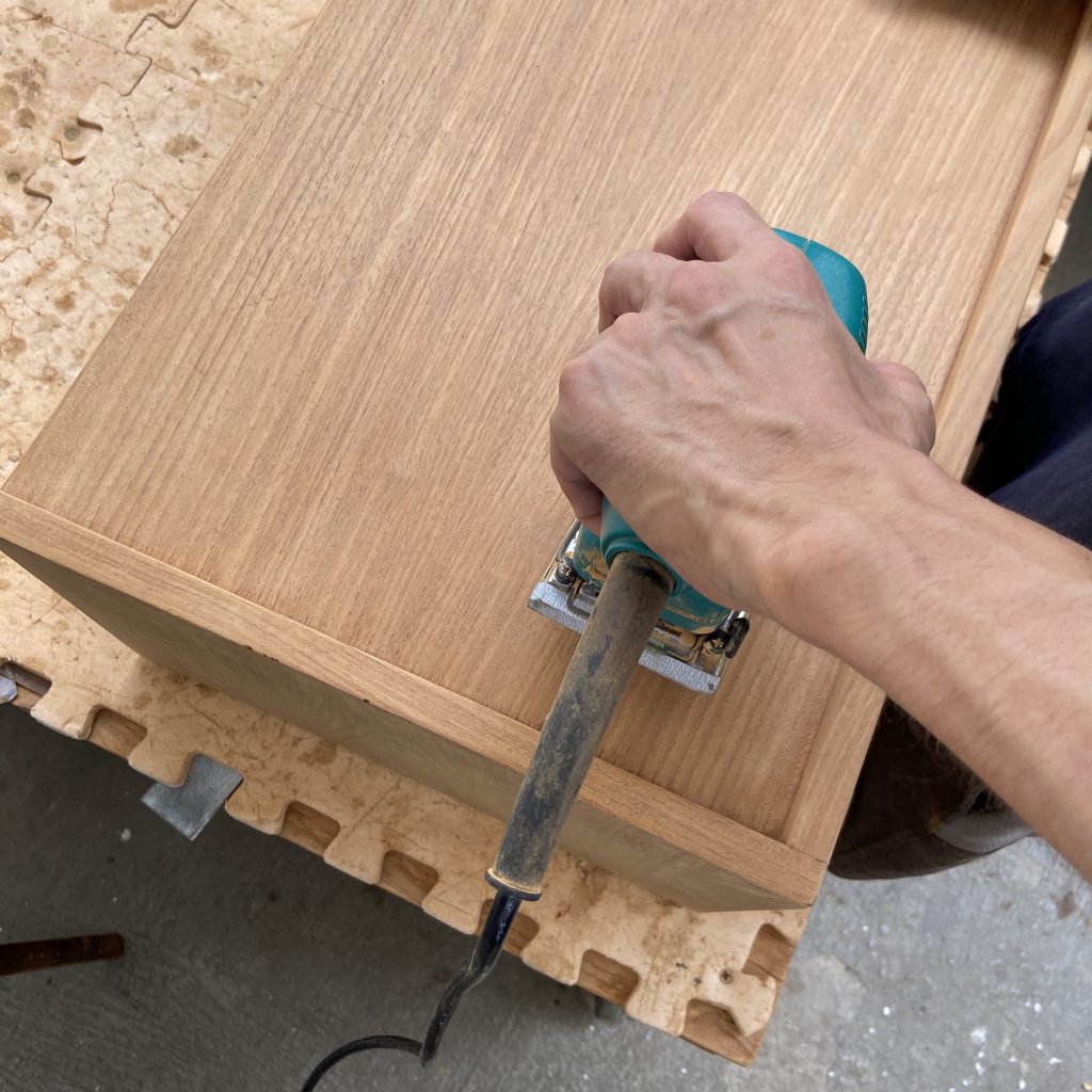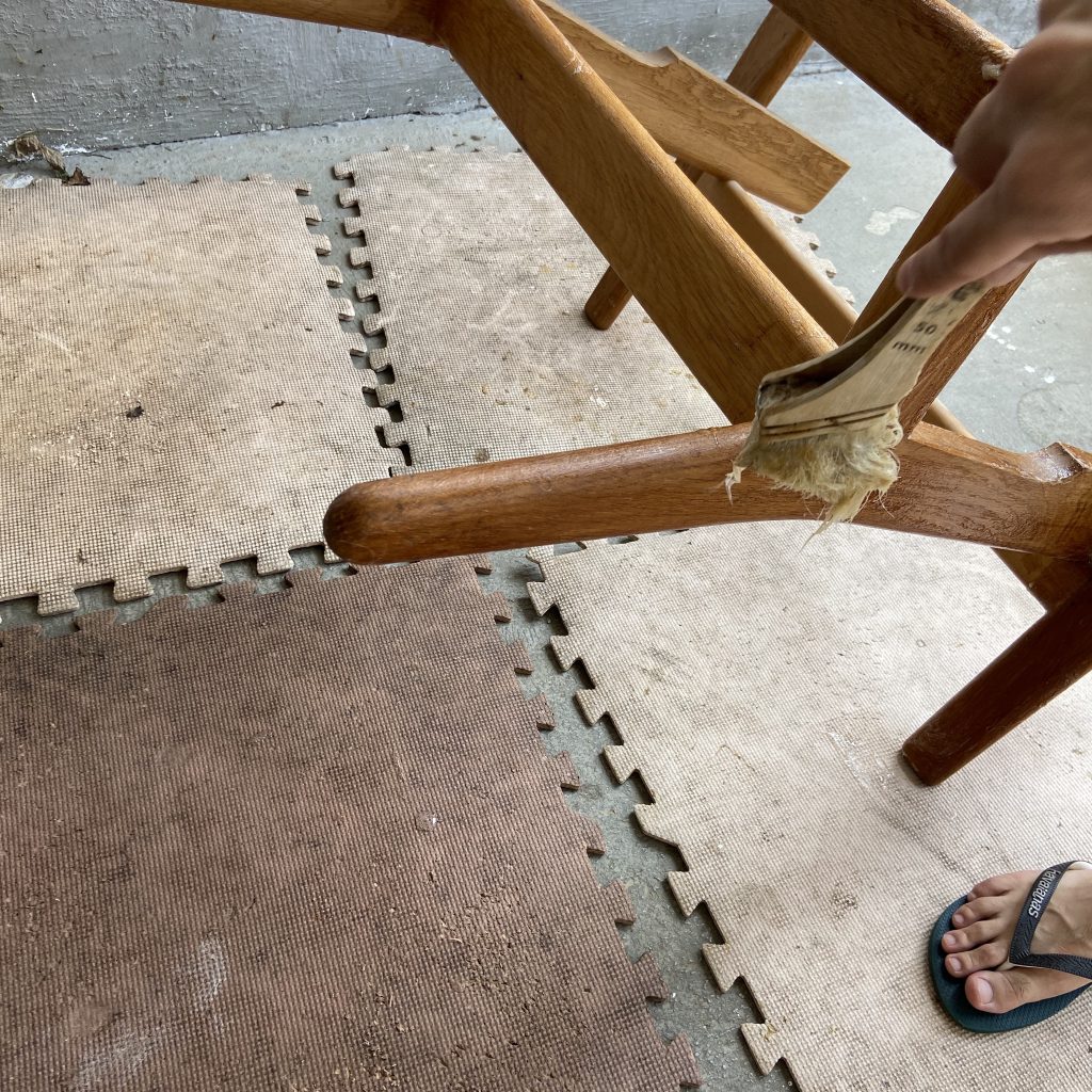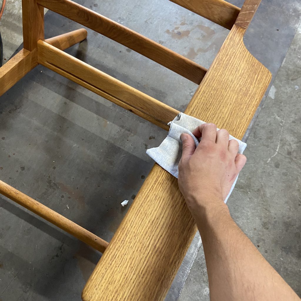 サンディング後に全体をきれいにし、材質にあったオイルを塗布し…