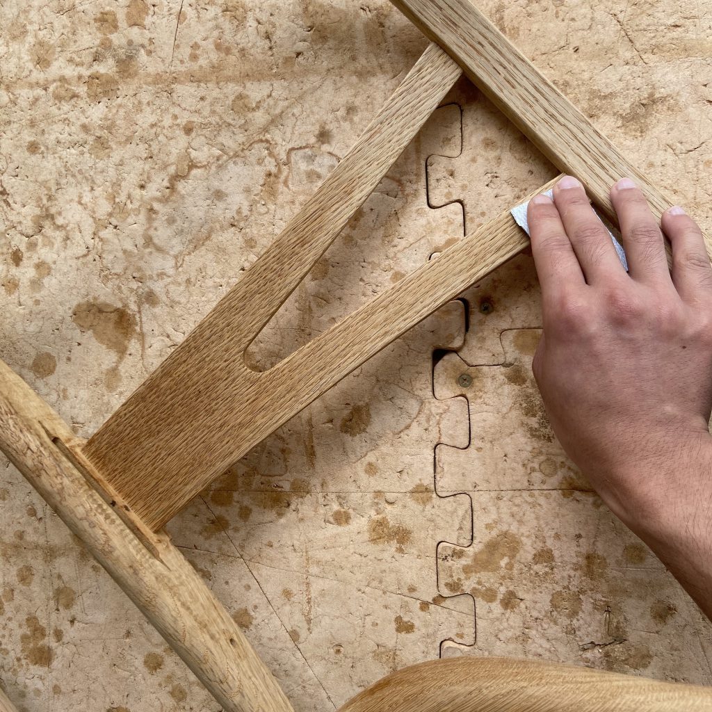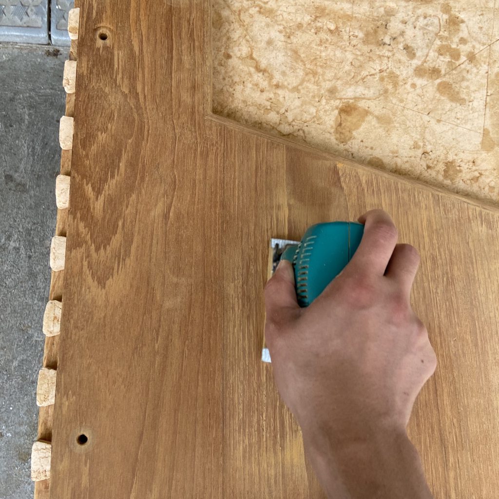 剥離した木部をしっかり乾かした後、サンドペーパーを使いサンデ…