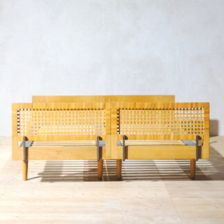 こちらの丸脚で背もたれに籐が使われてるタイプは人気で構造も他のDaybedとは異なる作りが見られます。