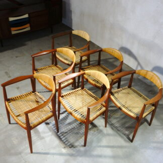 背もたれに籐が巻かれたタイプと、今では見られない当時の上質なチーク材がベストマッチな逸品となっております。初期のモデルはこれまで在庫でありました2脚の他、