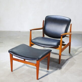 Finn Juhl Bwana Chair with Ottoman Black Leather