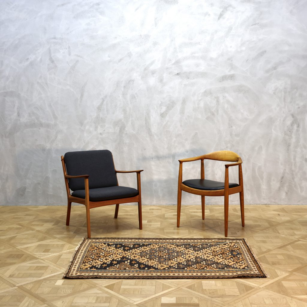 ウェグナー作品の中でも人気の高いモデルの一つで、肘のアームは広く水平なので、飲み物を置く程度のテーブルとしても使う事ができます。