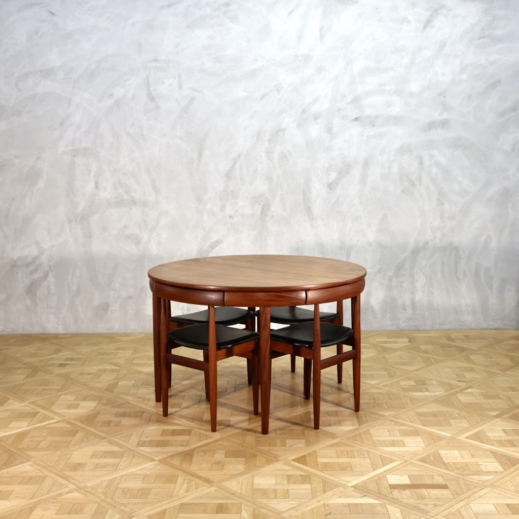 4脚の椅子が収まる非常に美しいダイニングセットで、近年人気が高く価格が高騰しております。