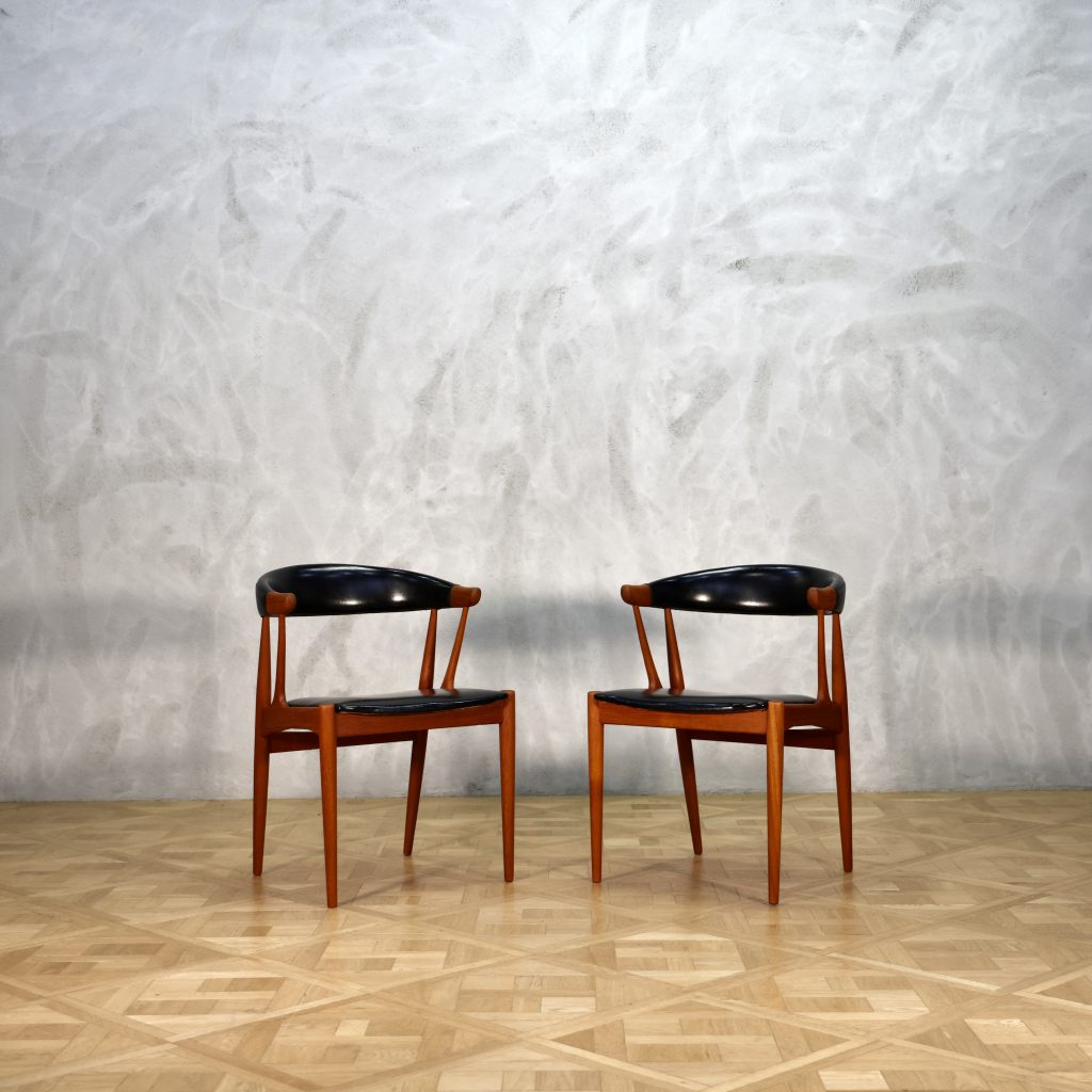 木部オイル仕上げ、クッションは本革ブラックにて張り替え済み。